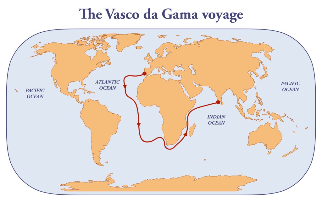 Die Ankunft Vasco da Gamas in der indischen Stadt Calicut am 20. Mai 1498 stellt einen Wendepunkt in der Geschichte dar. Die erste Indienreise der Portugiesen sollte die europäische Isolation aus dem internationalen Handel beenden. Der Zugang zum lukrativen Gewürzhandel ist somit frei. Damit ist Portugal, neben Venedig – das nur dank Verträgen mit den Osmanen Zugang zu den gefragten Gewürzen hat- die einzige europäische Macht die mit dem lukrativen Waren handeln kann und dadurch von einem armen Königreich in naher Zukunft zur Kolonialmacht wird. Der einst unbezwingbare Atlantik stellt nun kein Hindernis, sondern bis zum Bau des Suezkanals einen lukrativen Handelsweg in den indischen Ozean dar.